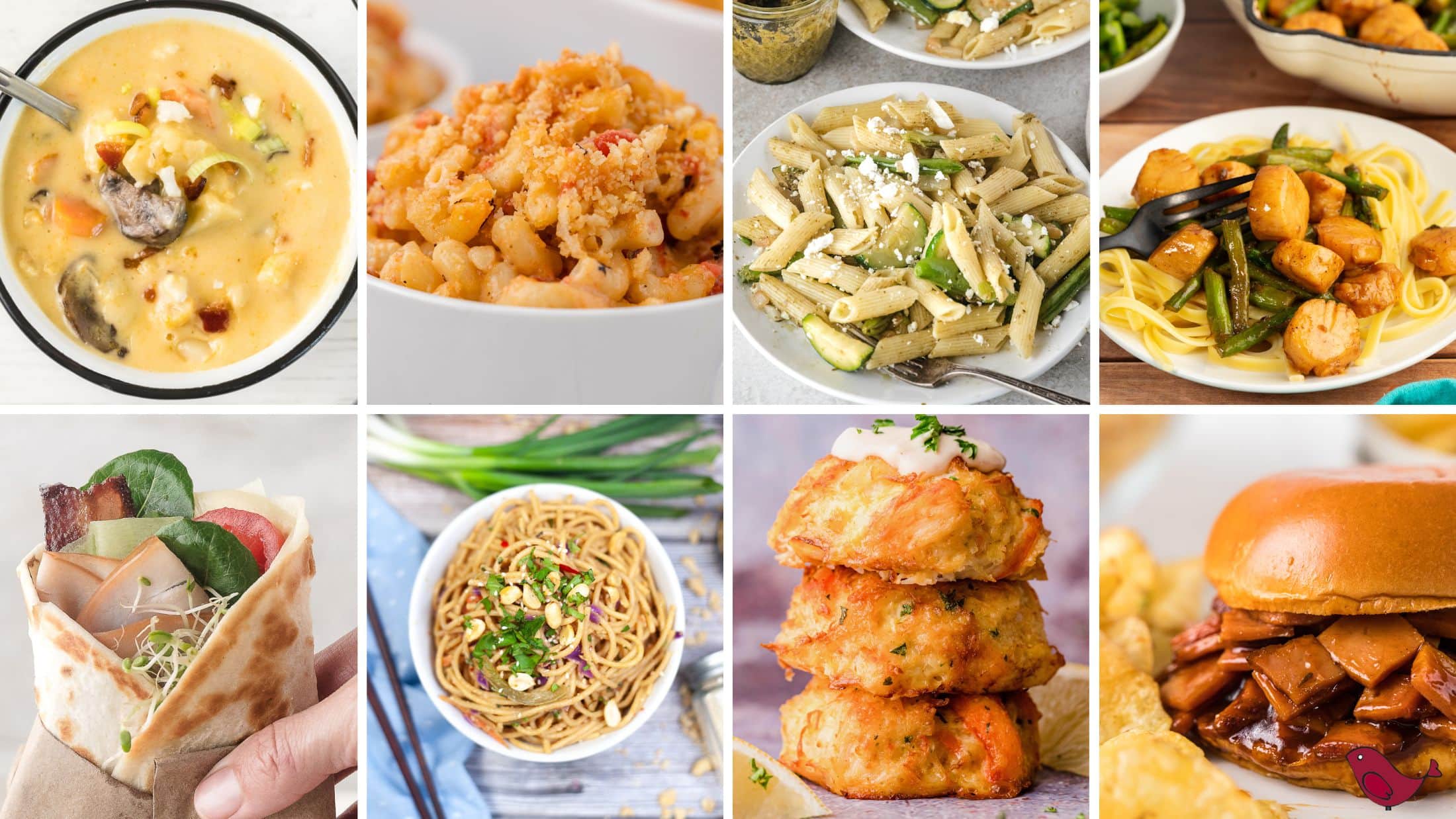 This scallops and pasta recipe features sea scallops or bay scallops, garlic butter, and white wine in a light, flavorful sauce. Add asparagus for a simple meal that's done in just 30 minutes.