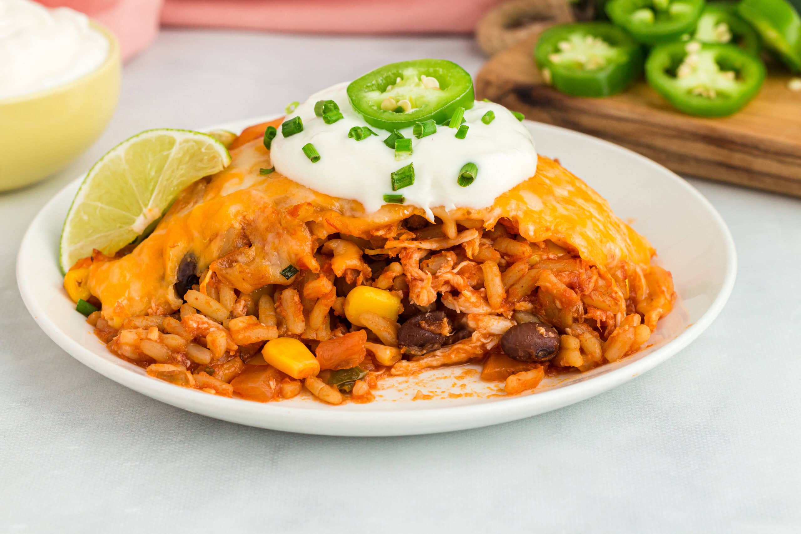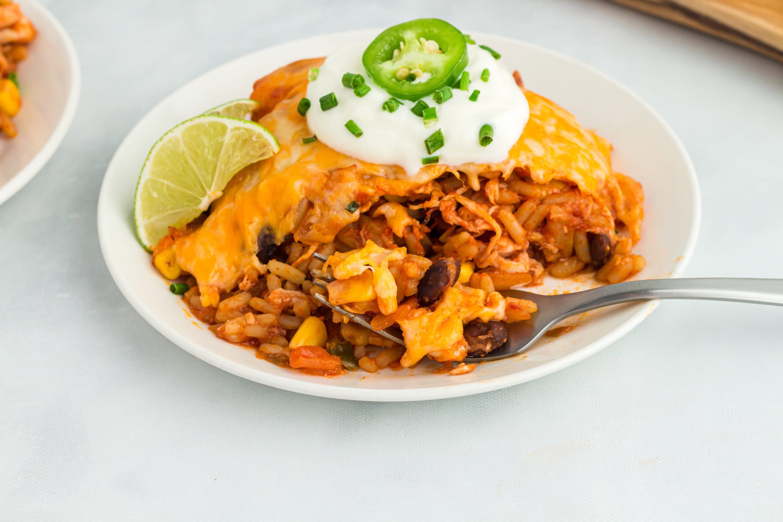 This recipe is a family favorite. Kids especially love this comforting meal. The flavorful black bean and corn salsa, soft rice, tender shredded chicken, and the crispy, creamy, cheesy baked topping. Chef's kiss!